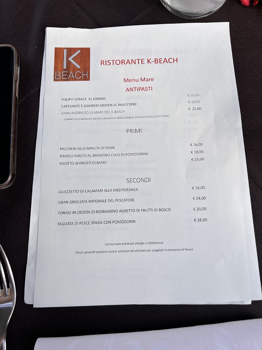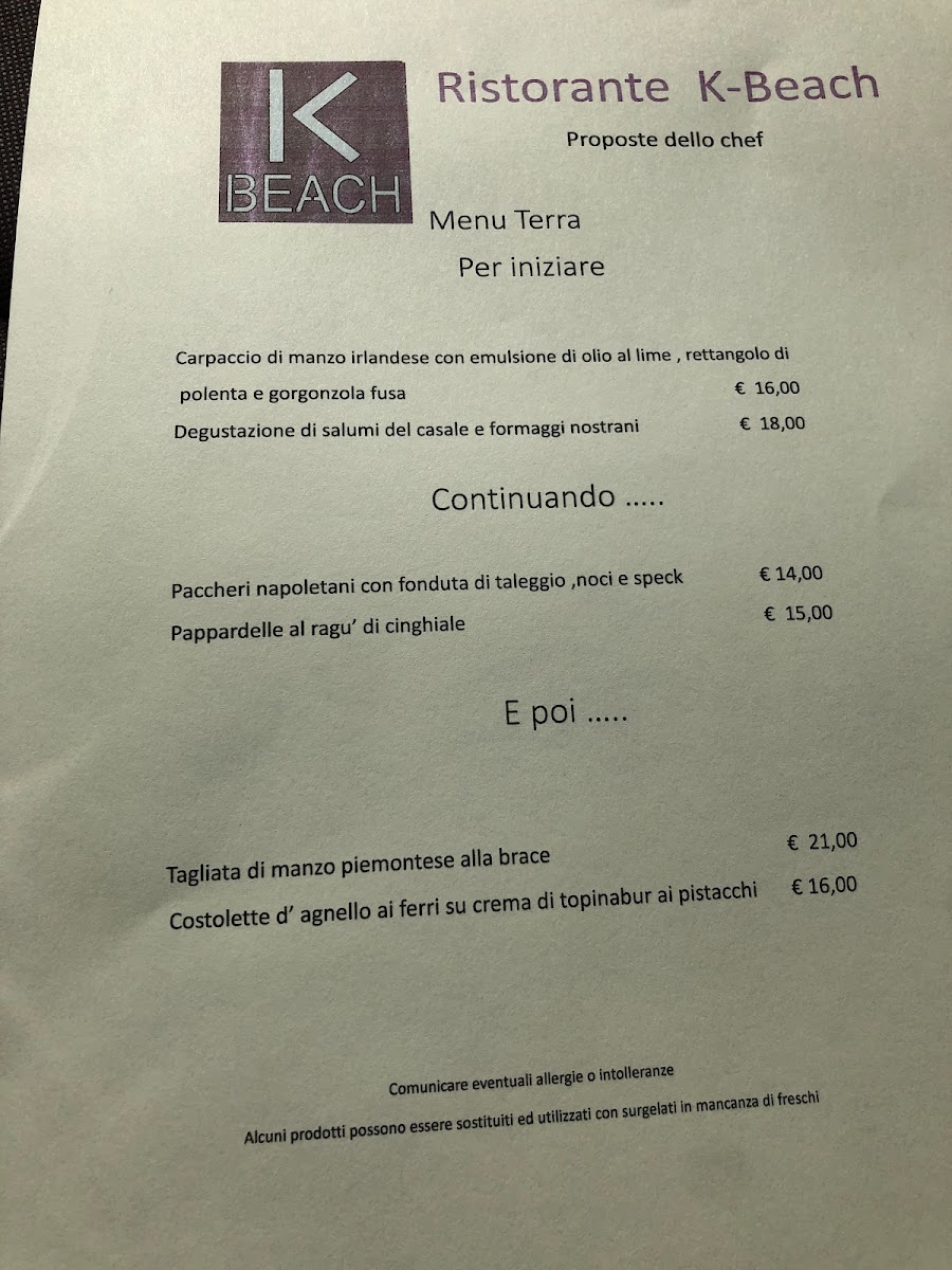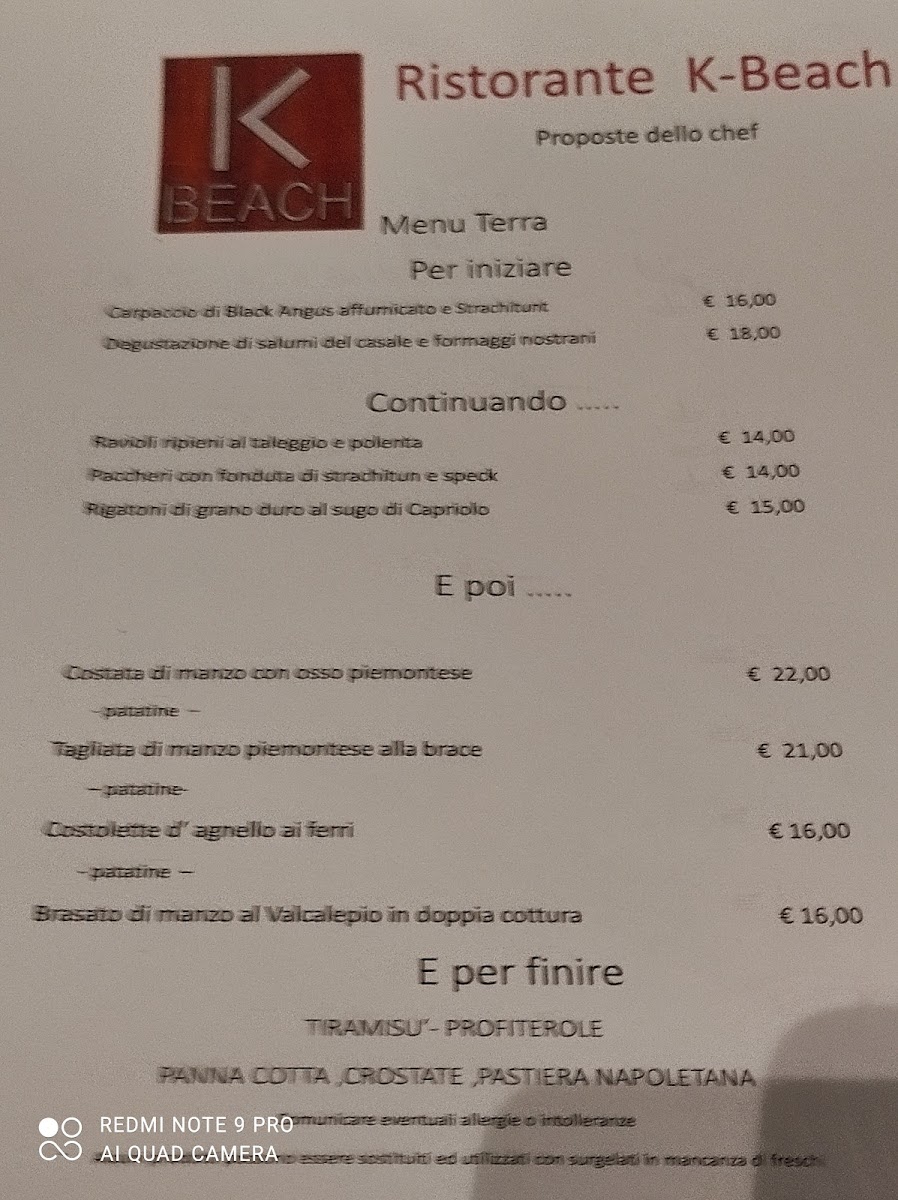 Ristorante, Pizzeria e Lounge Bar K-BEACH Menu